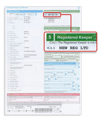V5c Registered Vehicle Keeper